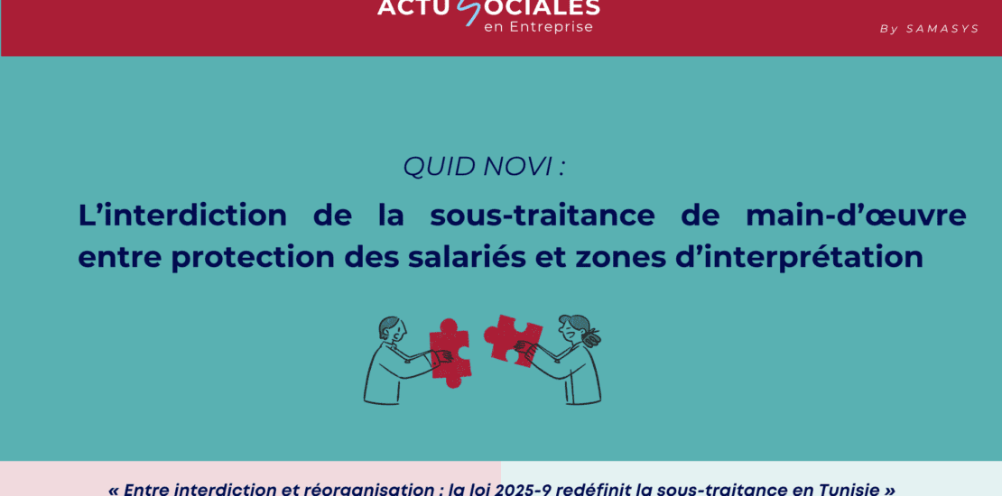 La réforme du Code du travail opérée par la loi n°2025-9 introduit un tournant structurant dans la manière dont les entreprises tunisiennes pourront recourir à des tiers pour exécuter des activités ou mobiliser des ressources humaines.